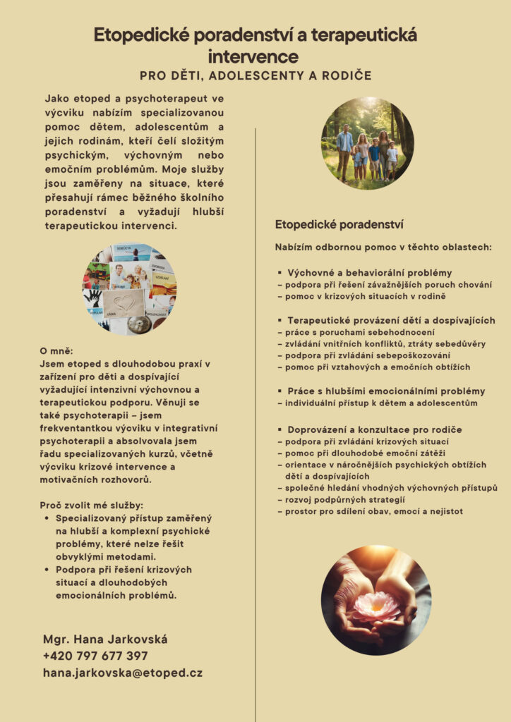 Nabídka – Etopedické poradenství a terapeutická intervence