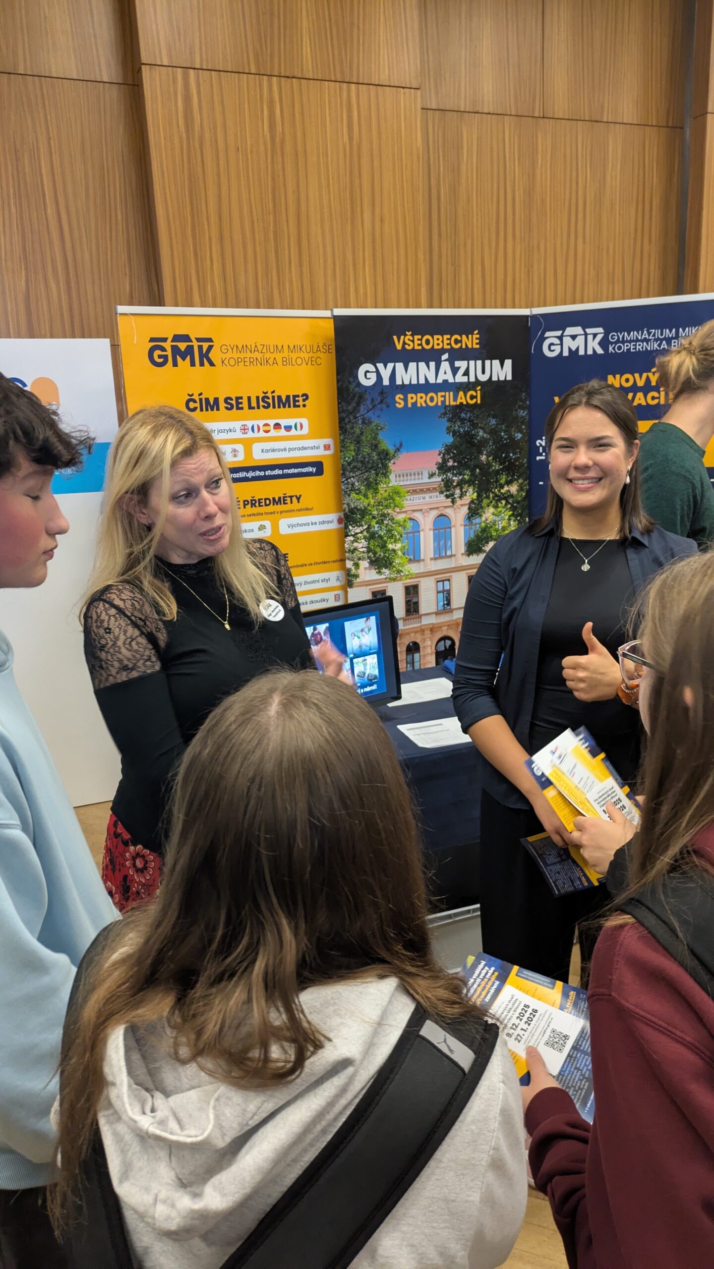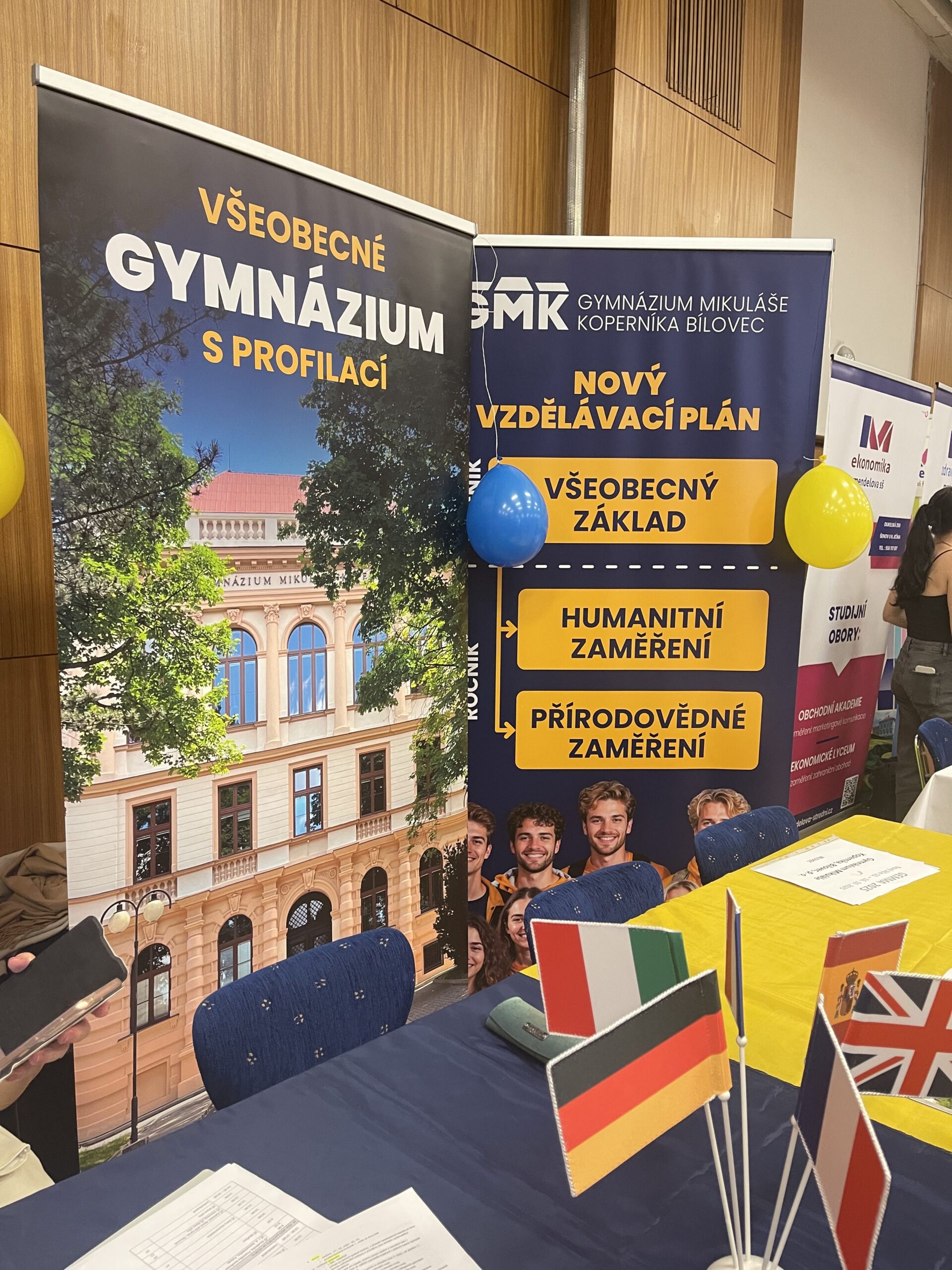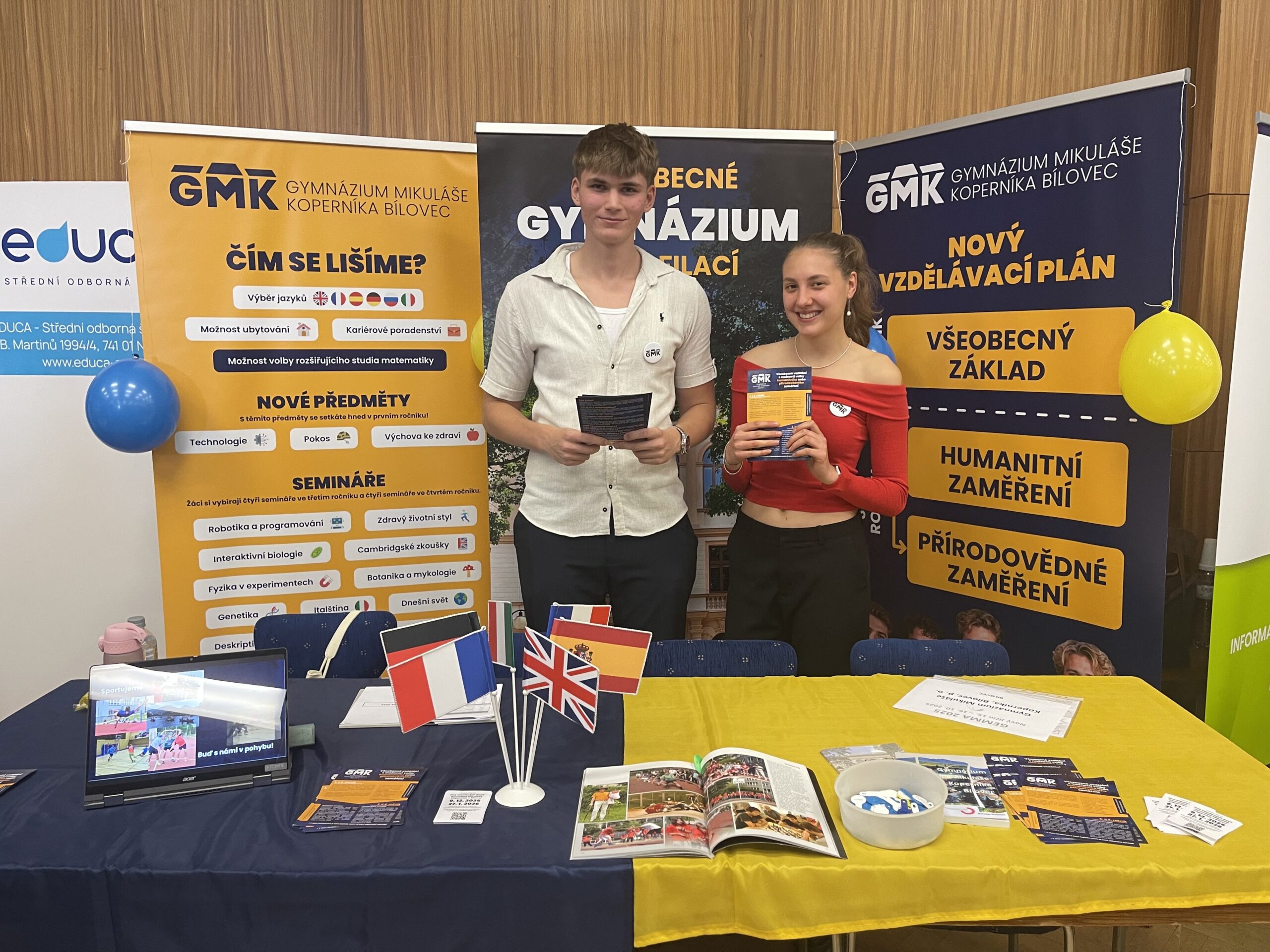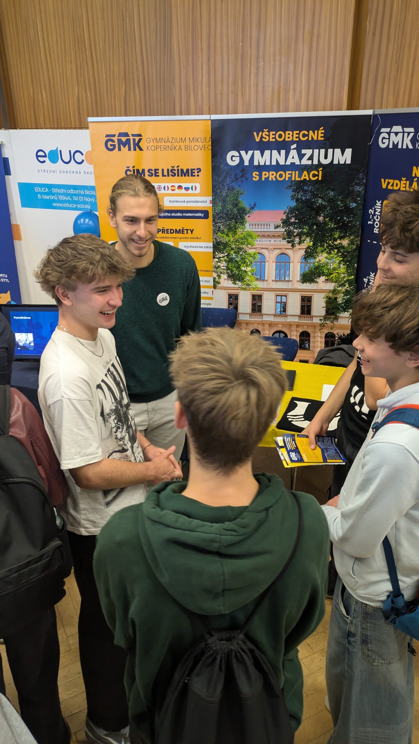 Minulý týden jsme se na veletrhu Gemma v Novém Jičíně setkali s budoucími studenty našeho gymnázia. Hovořili jsme o všeobecném gymnáziu se zaměřením na zájmy studentů, o nových praktických předmětech, širokém výběru jazyků, zahraničních výjezdech, možnostech ubytování, zajímavých volnočasových aktivitách, studentských akcích… Věříme, že jsme při vzájemných debatách přiblížili život a studium na našem gymnáziu a že se s mnohými z vás budeme v budoucnu setkávat pravidelně.